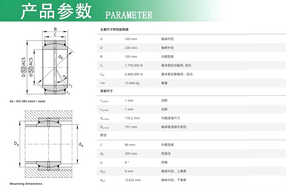 安徽捷越仓库发货实拍 GE160-DO-2RS-A轴承数据 d内径(mm): 160 D外径(mm): 230 B宽度(mm): 105