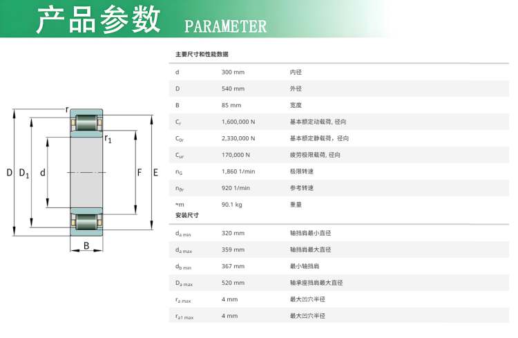 FAG圆柱滚子轴承 产品特征 1、优化内部设计 2、优化了表面接触几何 3、内部载荷分布更佳更均匀 技术优势 1、可增加额定动载荷Cr 20% 2、可延长额定寿命达70% 3、可减少摩擦达50% 应用设备部位:重齿减速机VBP1800中间轴上端