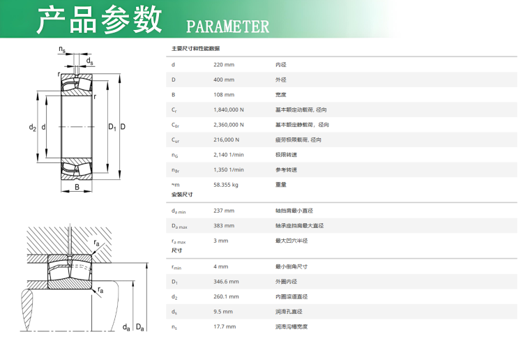FAG调心滚子轴承22244-BE-XL-C3 重齿JLP180减速机 |