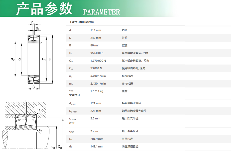 FAG调心滚子轴承 产品特征 1、优化了内部结构以提高载荷承载力 2、新滚动体尺寸,端部为弧形 3、改善了表面质量 4、优化了滚动体和滚道之间的接触几何 5、提高了运行精度 6、浮动的中心挡边 7、新设计的钢保持架和铜保持架 技术优势 1、可延长额定寿命达60% 2、可增加额定动载荷Cr达15% 3、减少摩擦 4、可提高极限速度nG达50% 5、降低轴承温度 应用设备部位:西门子B3DH14B/B3DH14D斗提减速机