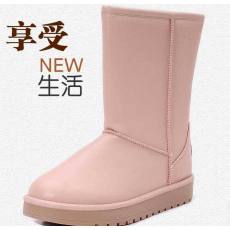 冬季新款中短筒PU雪地靴加厚底保暖鞋防滑底棉靴短靴