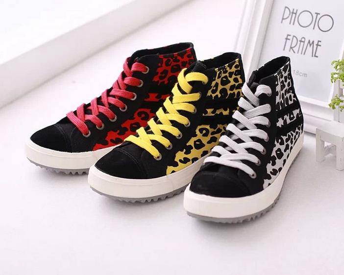 杰维斯新款女鞋豹纹控高帮帆布鞋