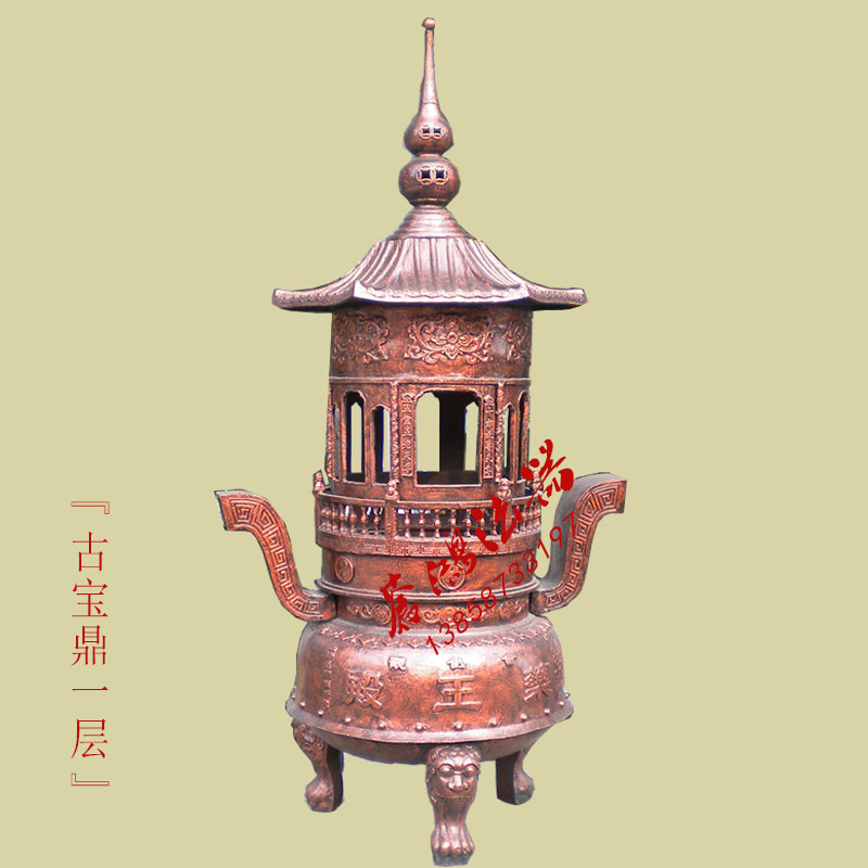 寺庙铸铁一层宝鼎 圆形寺庙门前摆放宝鼎 |