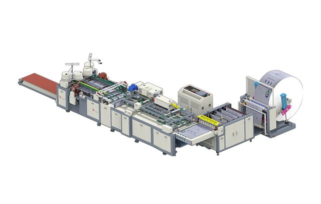 编织袋切折缝自动化成套生产线是一款融合定长裁切、阀口成型、双头缝纫、自动堆垛等多项功能集成一体研发的新型设备,应用于有 M 边或无 M 边的筒布加工各类塑料编织袋(如矿物粉袋、石灰粉袋、碳酸钙粉袋、腻子粉袋等)。可定长裁切、折口、上下口缝纫、收袋;单人即可操作,节省劳动成本,提高生产效率。